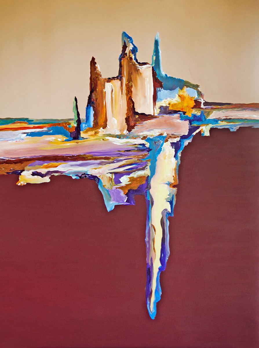 JD Morera's art presents the essence of landscape through pictorial elements. Through careful brush strokes, he lays vivid color next to vivid color, and often uses accent strokes of deep blacks and browns, creating the illusion of rising from the void. Yet, landscape and cityscape are central to the works.